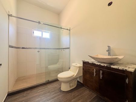 Es una casa nueva con diseño moderno, funcional y de una sola planta, construida sobre un terreno de 335.27 m² totalmente bardeado, con 124.60 m² de construcción. Cuenta con 3 amplias recámaras (principal con baño y walk-in closet)