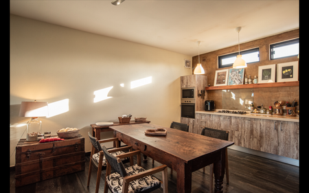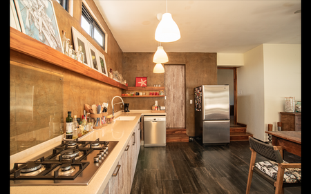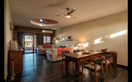 La arquitectura destaca por sus cúpulas de ladrillo, cemento pulido, elementos en madera, asi como algunos muros de ladrillo, detalles que armoniza en buen gusto y generan un ambiente acogedor . Las ventanas y puertas de VAESA incluyen mosquiteros, mientras que la cocina del Penthouse y el baño principal cuentan con diseño de Mi Cocina, con top de Corian y accesorios TEKA. Las puertas son de Parota y el walk-in closet también ha sido diseñado por Mi Cocina.