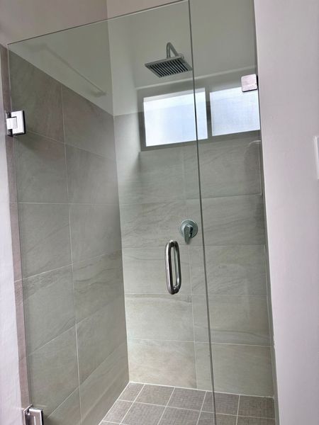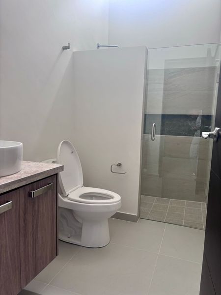 -Baños completos con cubierta de mármol y canceles de vidrio templado