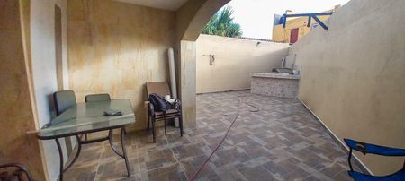 La casa cuenta con una linda fachada y portones, todas sus áreas tienen piso de concreto con una barra y asador, dos habitaciones, área de sala-comedor y cocina, 1 baño completo área de lavado techada, estacionamiento para un auto, una parte del área de patio techada, con barra y asador. La propiedad cuenta con calles pavimentadas cerca de tiendas de conveniencia escuelas, universidades, farmacias-etc.