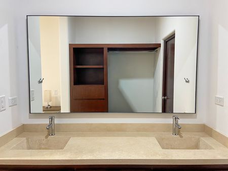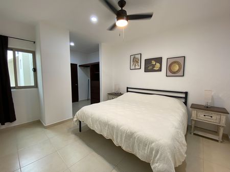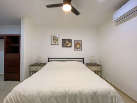 La recámara principal ofrece cama King size, burós, lámparas, juego de blancos (sábanas) y A/A, mientras que la recámara secundaria cuenta con dos camas individuales con blancos, buró, lámpara y A/A.