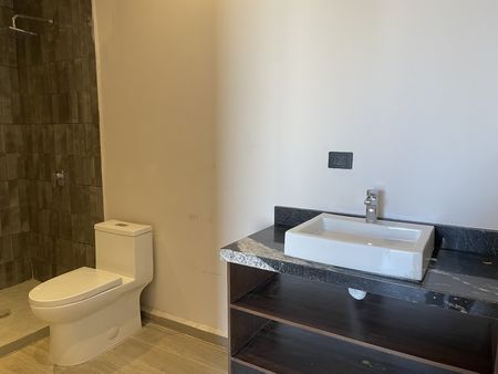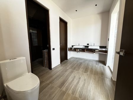 Recámara principal con baño completo y vestidor, cancelaría tipo español y cristal templado, aire minisplit.