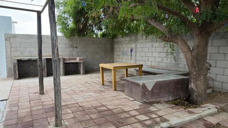 Amplio patio en la parte de atrás, con sombra natural de un gran árbol, espacio amplio para el descanso de tus mascotas.