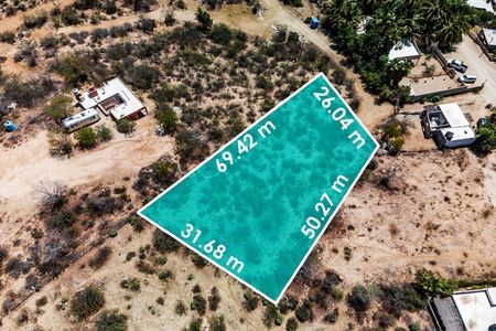 Un terreno ideal para residencia en Los Barriles. Es una calle interior y tiene 2 entradas: por la calle Antonio Verdugo (pavimentada) y por calle de acceso del lado sur.