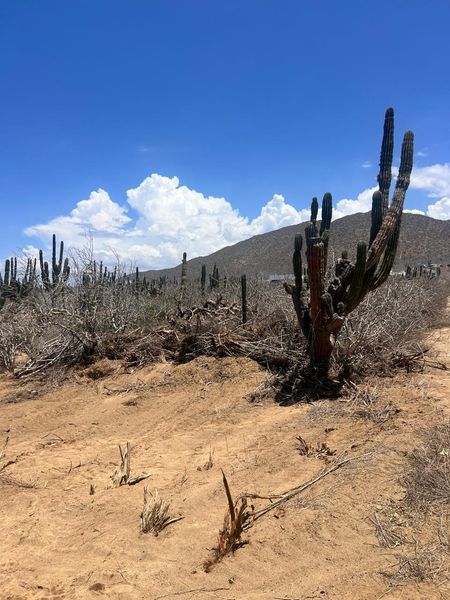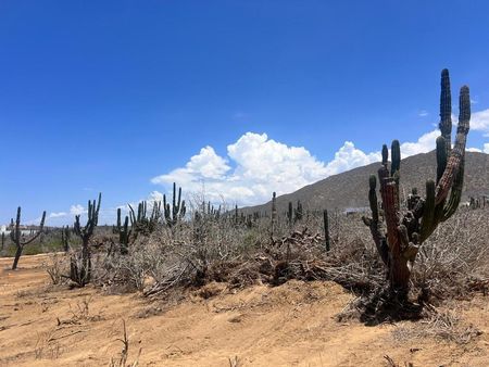 Se localiza en el área de Cerritos, zona de alta plusvalía; con construcciones vecinas, cerca de la carretera a Los Cabos y a 900 metros de la playa.