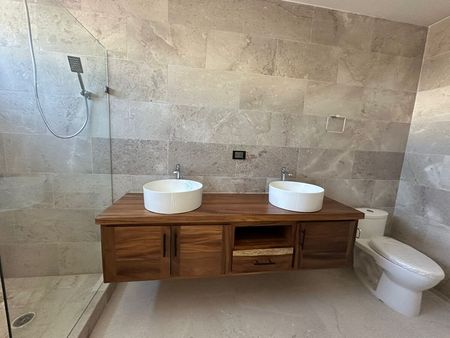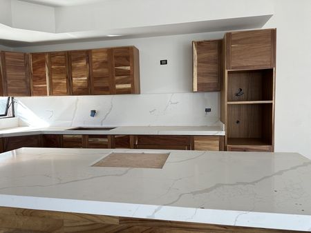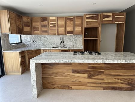 • Carpintería de parota sólida: Closets, cocina y puertas hechos con este fino material, añadiendo calidez y distinción.