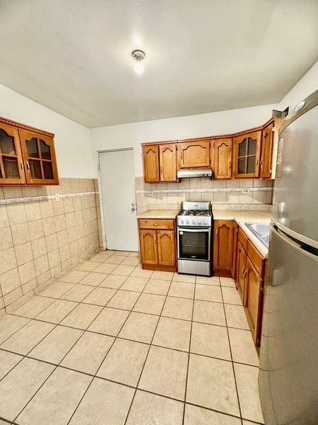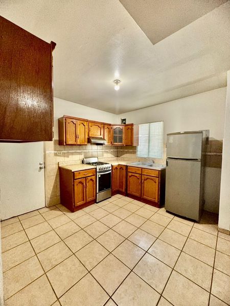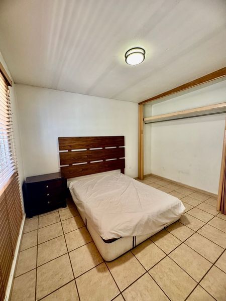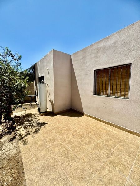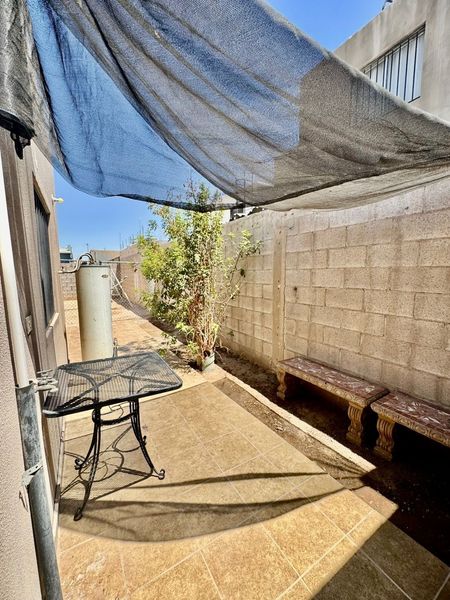 Ventanas con protección Patio trasero con loseta + muebles de jardín
