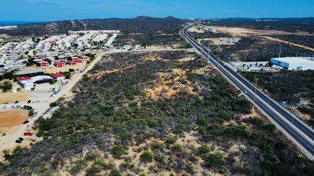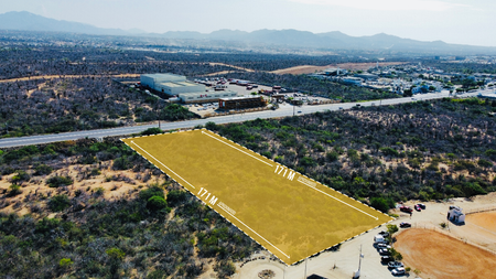 Lote Comercial en excelente ubicación sobre la Carretera en la entrada a Cabo San Lucas. Lote de 10,251 M2 con 59 metros de frente a la carretera, frente a la Coca-Cola.