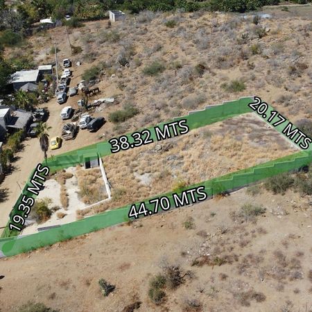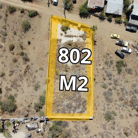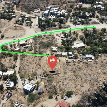Terreno para construir departamentos o almacén en zona del Pueblo Mágico de Todos Santos. A solo 150 Metros de la carretera principal, En la zona de San Juan. Completamente bardeado, piso de concreto, cisterna hecha en obra, pequeño cuarto de máquina y medio baño en obra negra. Cuenta con muro de contención. Viabilidad de servicios de agua y energía eléctrica.